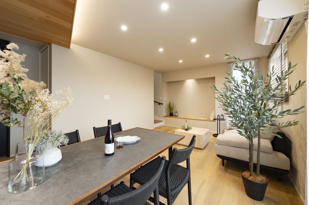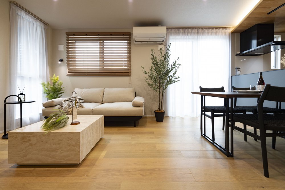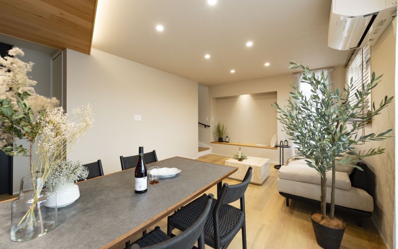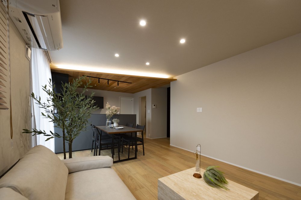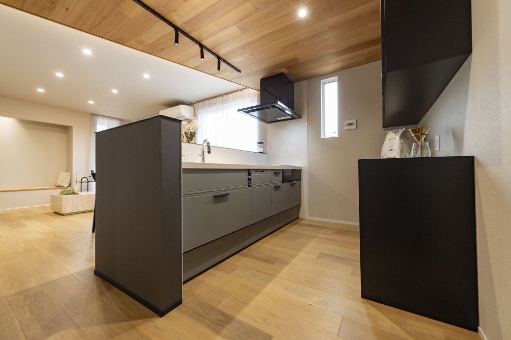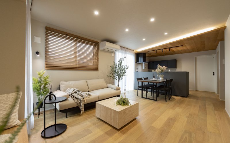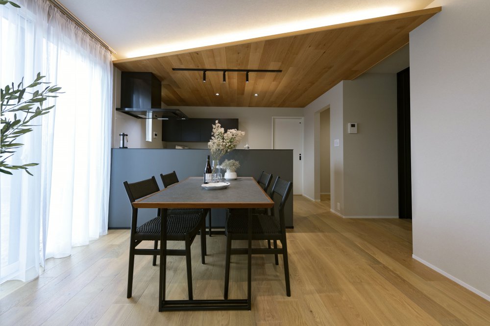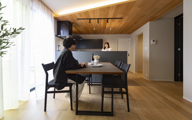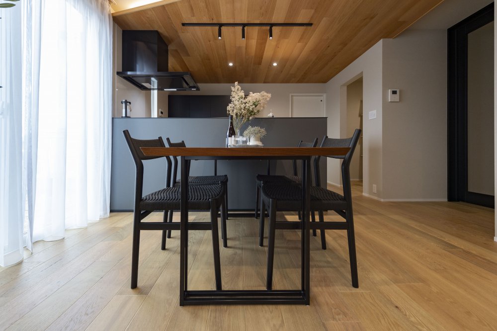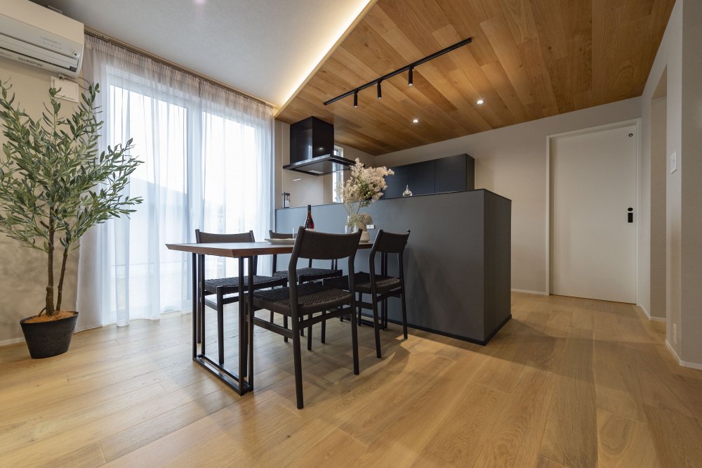 天然木を基調とした中にブラックの差し色でアーバンな要素を演出