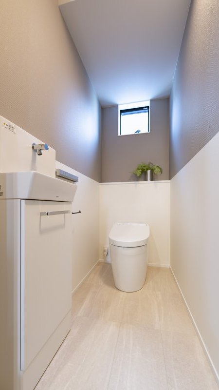 トイレや洗面もグレーとホワイトの