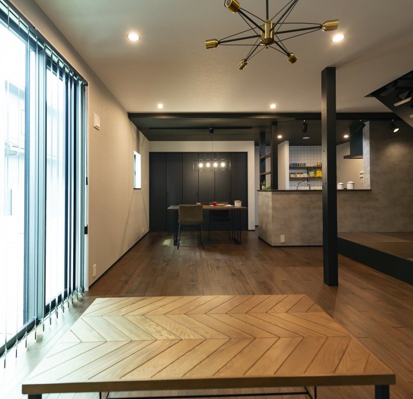小上がりのタタミコーナーとスケルトン階段がおしゃれ。