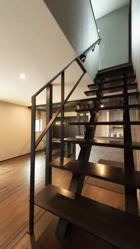 階段をスケルトンにすることで、ブルックリンらしさと空間を広く演出しています。 -