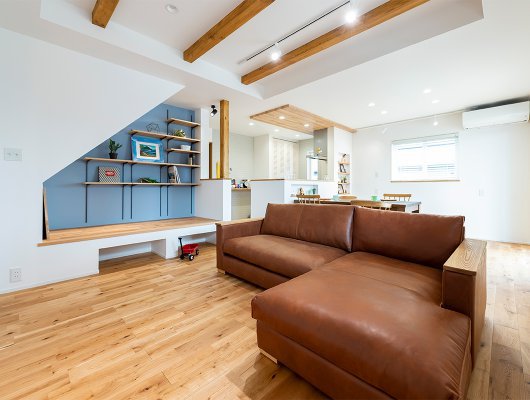 オークの無垢フローリングでまるでリゾートにいるかのような雰囲気を。