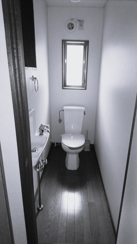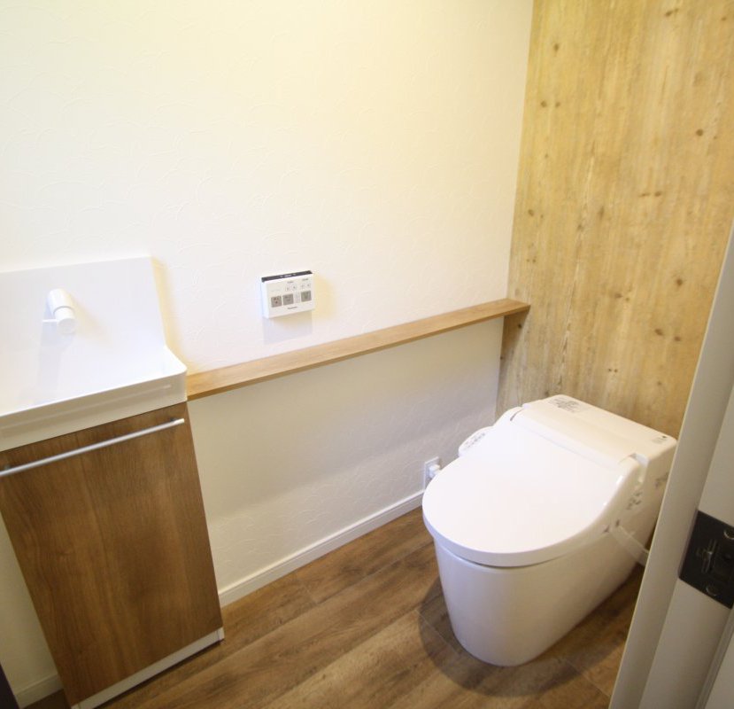狭いトイレ空間に優しい木目を貼り、さりげないこだわりを。
