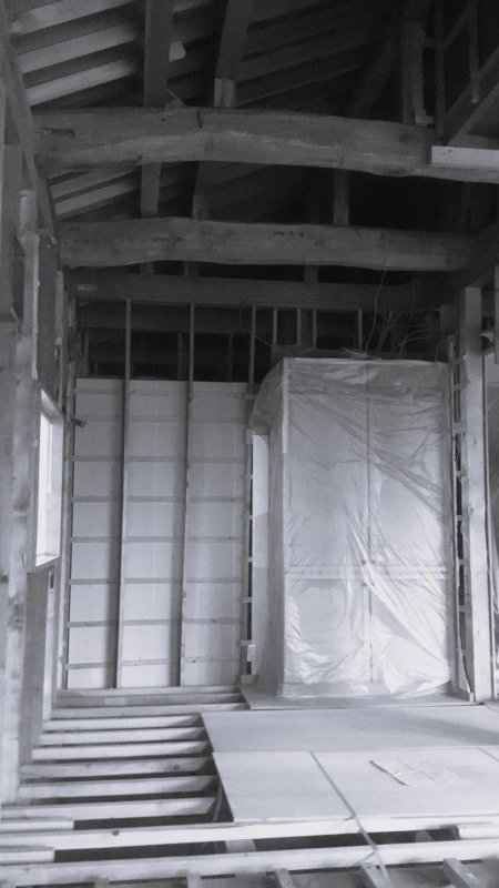 改修前は天井裏に隠れていたダイナミックな丸太梁。
