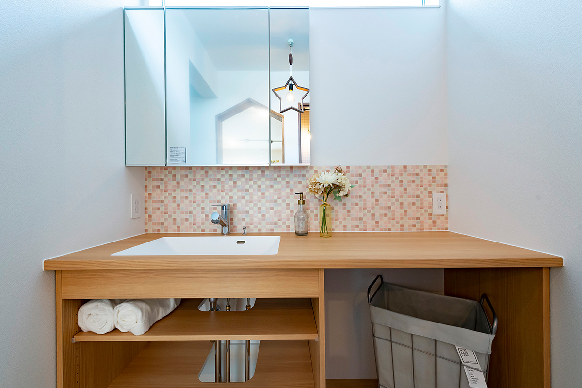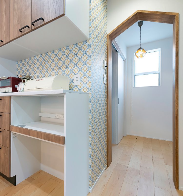 モザイクタイル調の壁紙があることで華やかな印象に♪