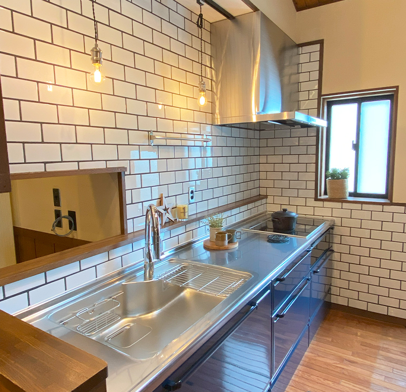 サブウェイタイルを貼ってcafe風キッチンを実現。