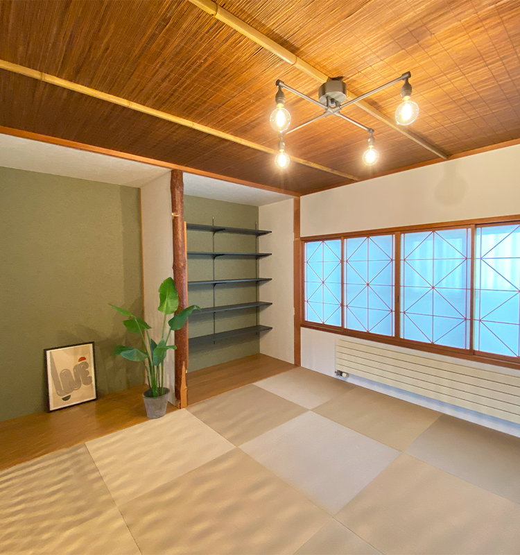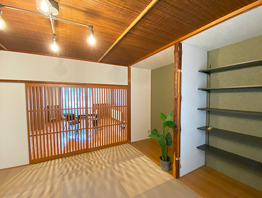 和室との間仕切り襖を木製格子建具に入れ替えました。