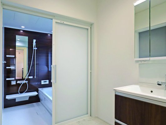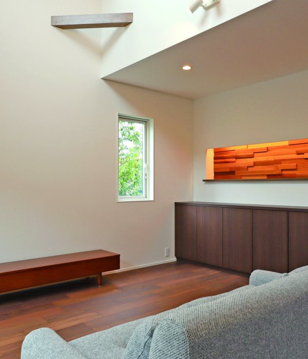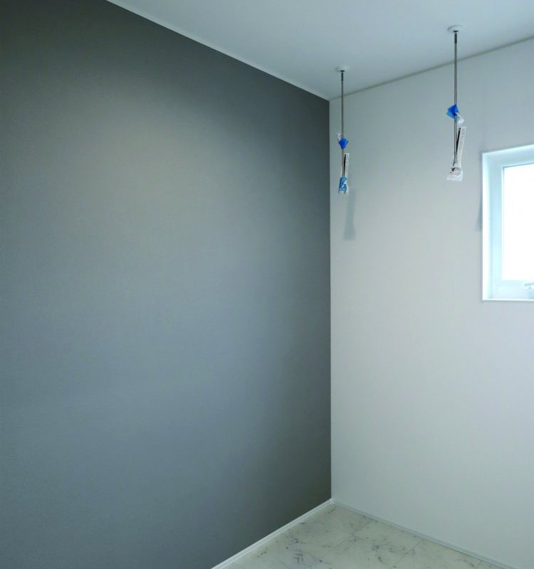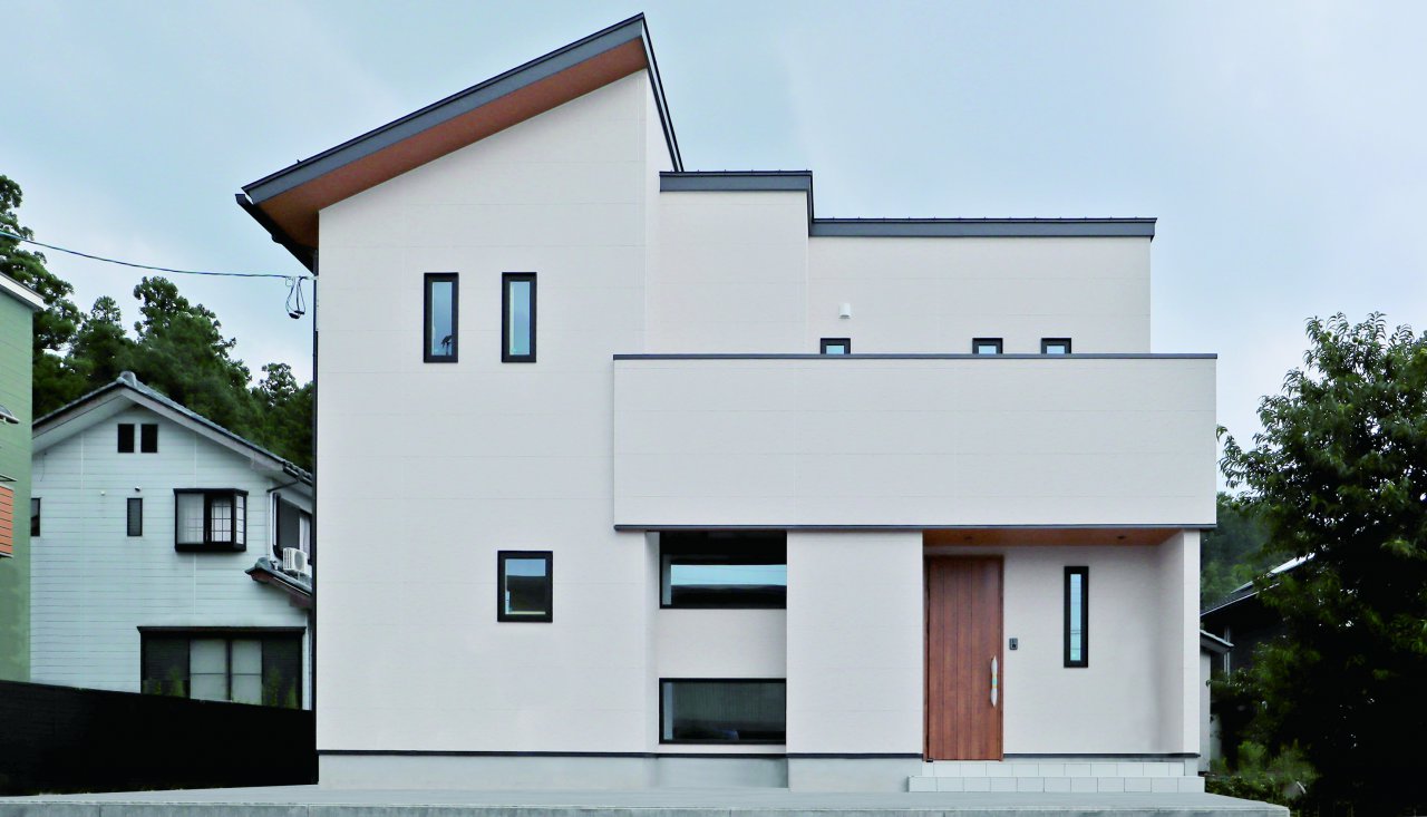 外観はホワイトのサイディングで、凹凸のある立体的で特徴のある仕上がりになりました。