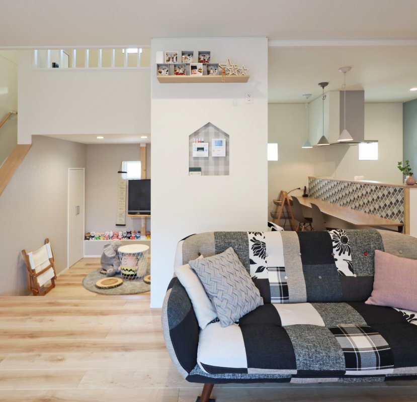 スキップフロアの下をキッズスペース、上をワークスペースとしてプランニング。