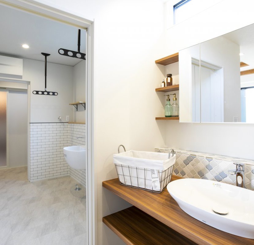水廻りとウォークインクローゼットを一直線に配置した動線。
