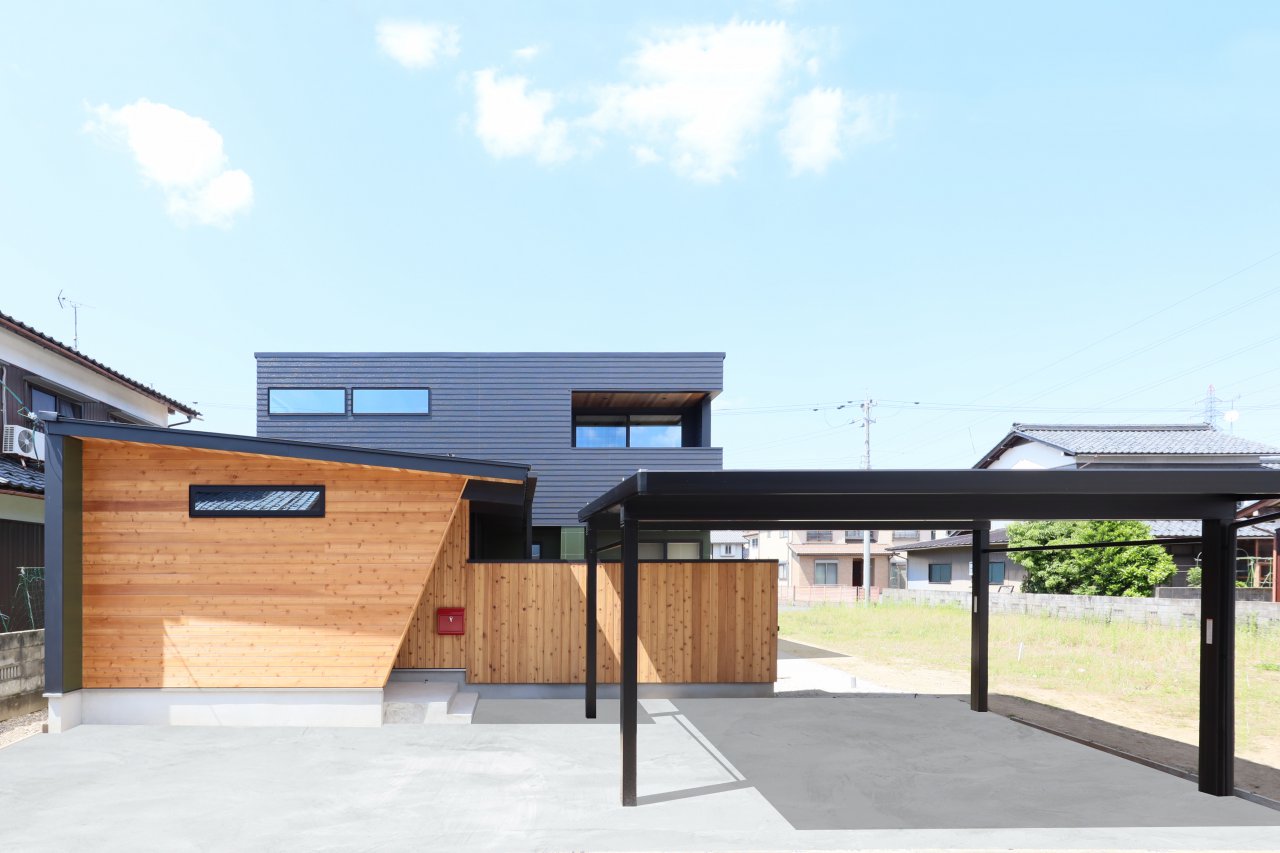 よろい調のサイディングにレッドシダーをふんだんに使ったぜいたくな外装。