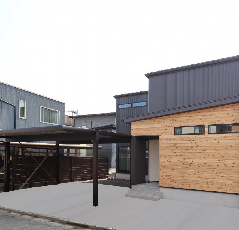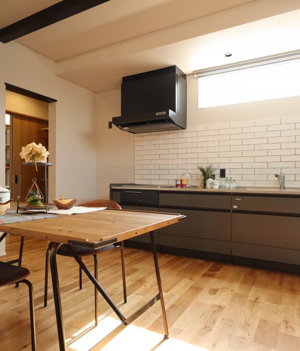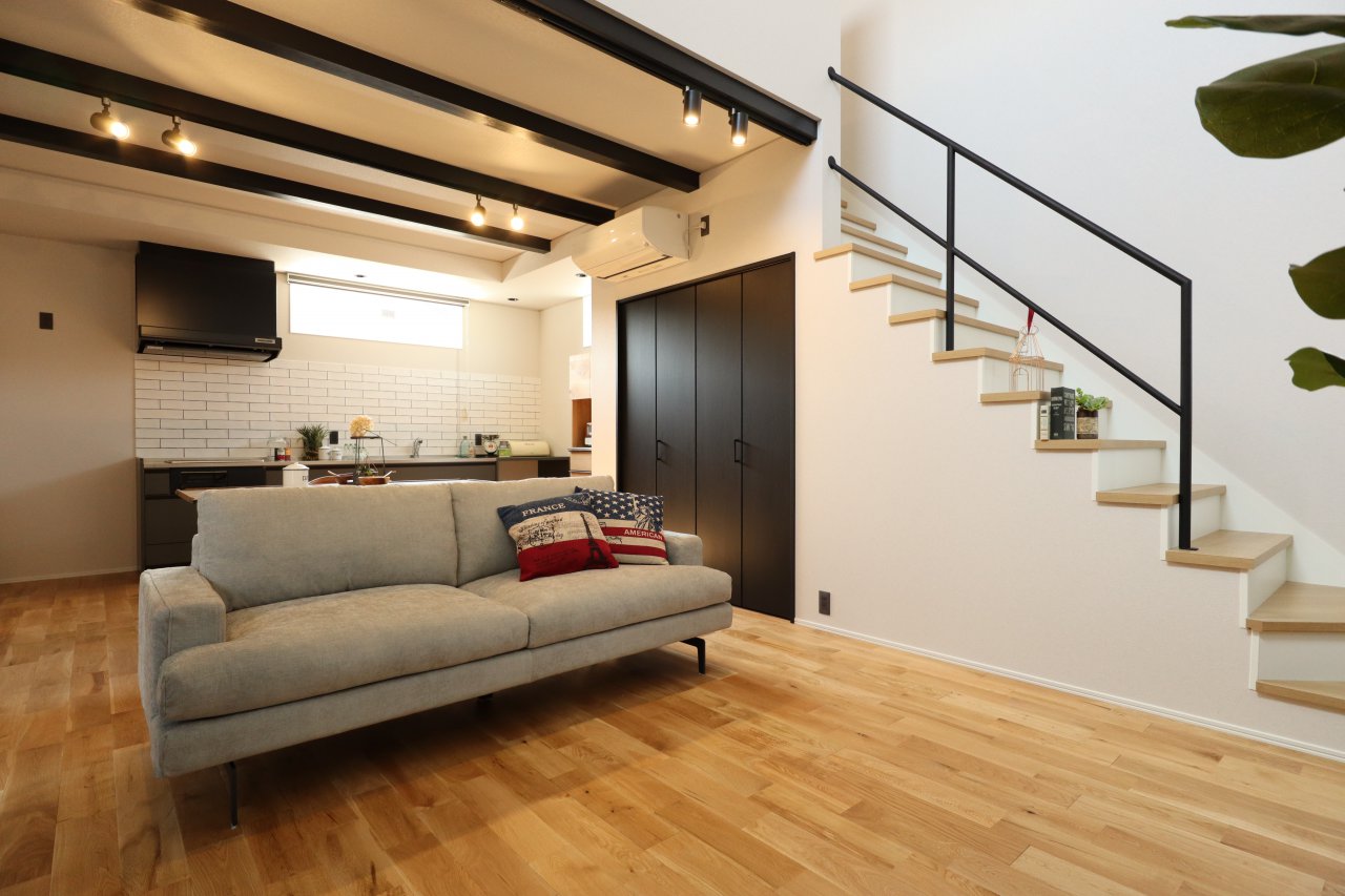 ナチュラル色の床材とブラックの建具のコンビネーション◎。
