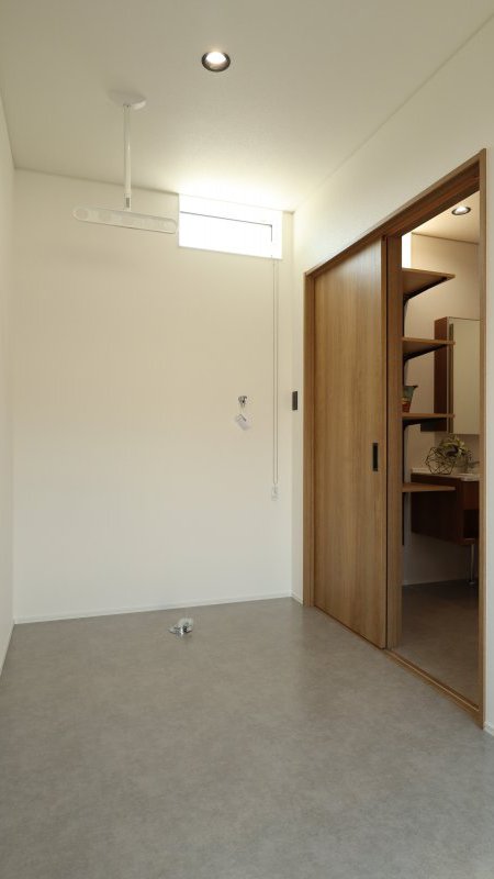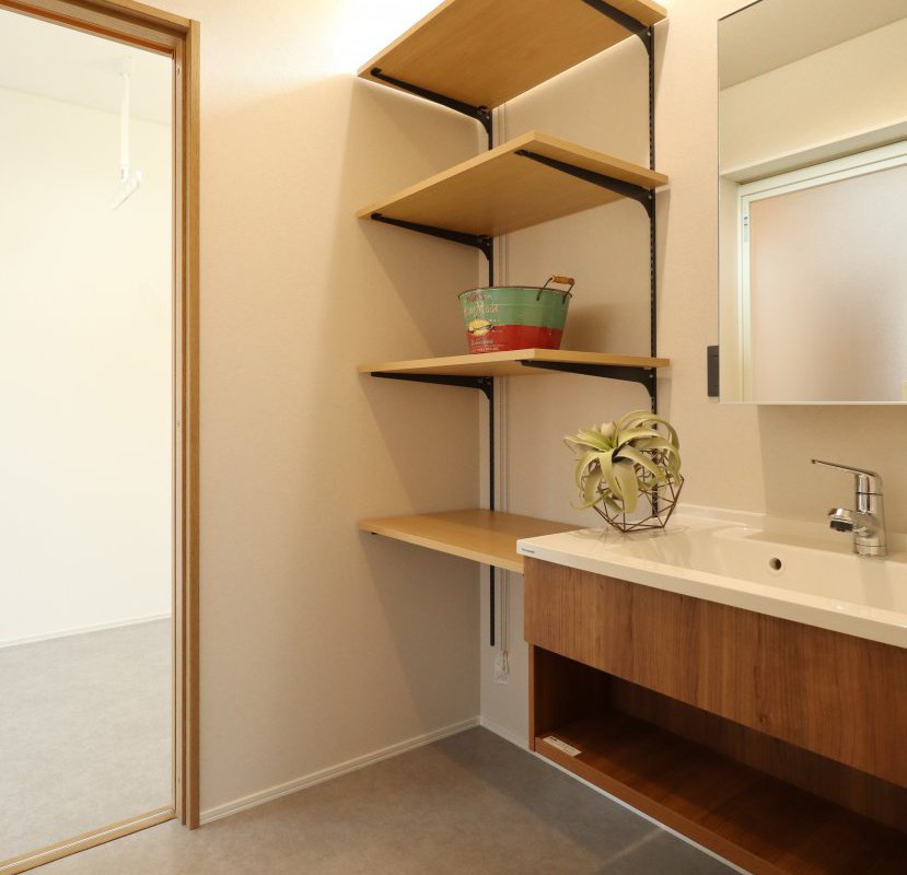 玄関ホールの有孔ボードはアクセントにも装飾にも。