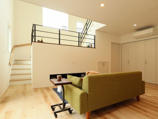 生活スペースもスマートに。壁やスキップフロアの下まで収納を設け、