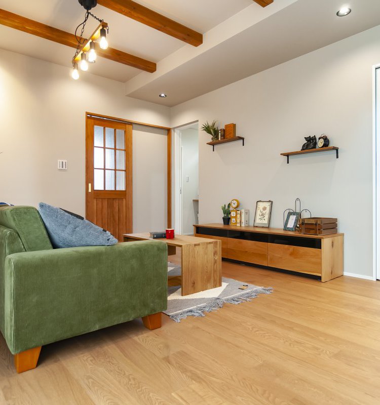 天井の梁や木の優しい質感を生かした、統一された家具で