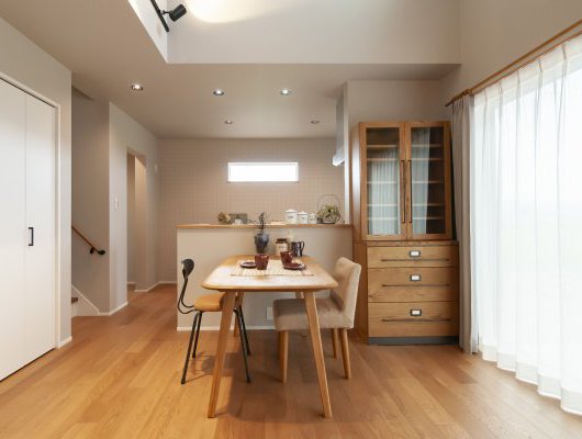 木の優しい質感を生かした、統一された家具で