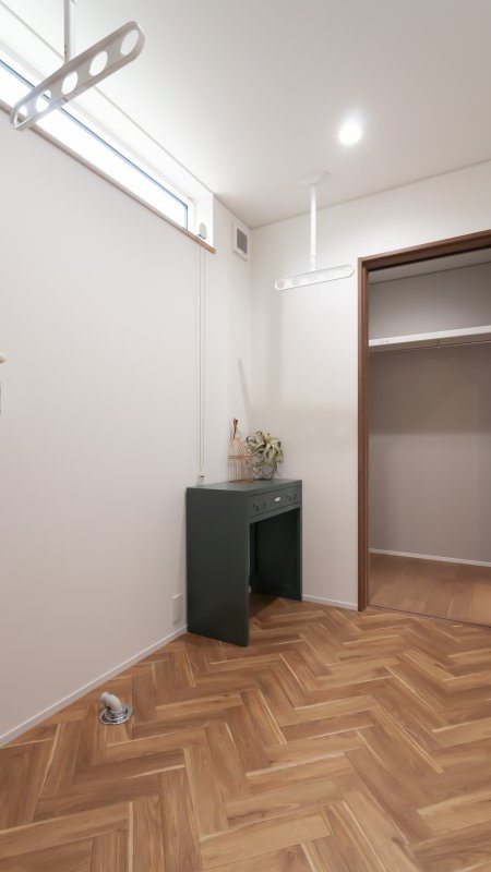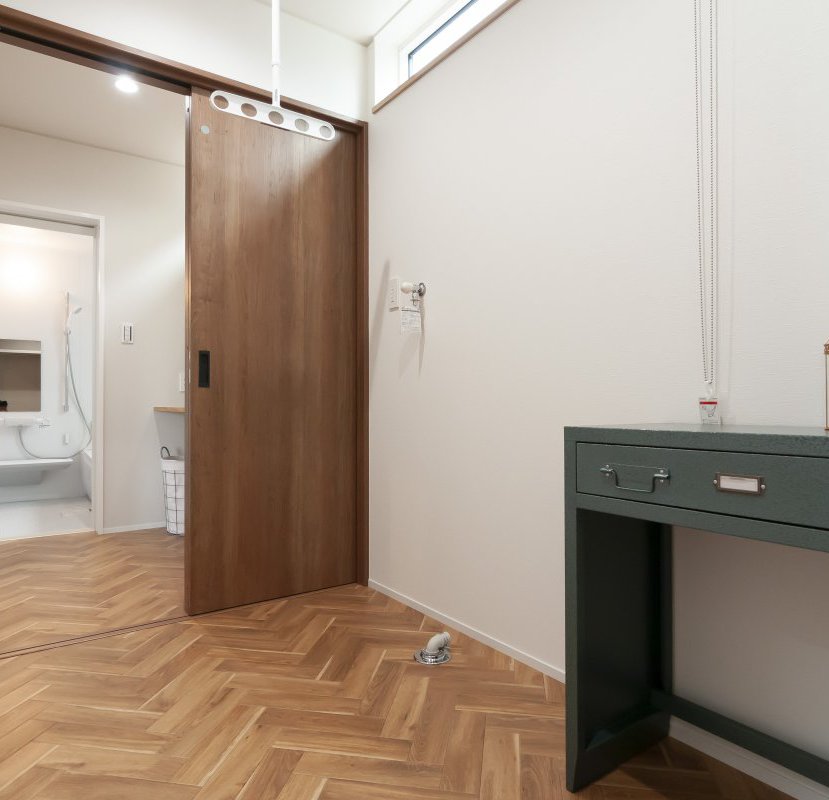 洗面脱衣室、サンルーム、ファミリークロークを繋げた