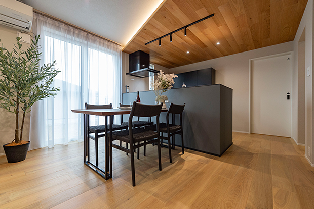 天然木を基調とした中にブラックの差し色でアーバンな要素を演出