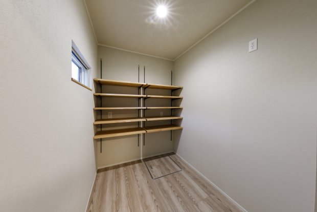 またキッチンの横にはパントリー空間、リビングや玄関まわりにウォークインクローゼットと